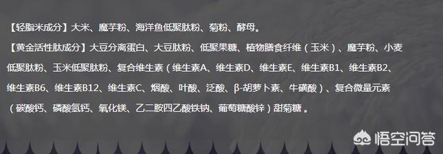 然后我从网上查了一下,还真的有号称能减肥的大米。说是历经多少年、多少工艺,掌握了多少核心技术之后,为减肥人士量身定制的减肥专用米。在其官网上,我找到了相应的产品的成分表: