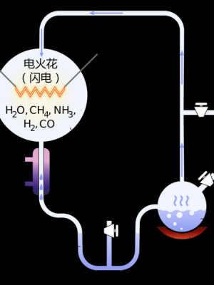 1953年,当时还是学生的米勒做了一个模拟地球早期环境的实验,他先把烧瓶内的空气抽走,然后充入从其他科学家那里打听到了思维早期地球大气成分年级,并使用电击的形式模拟地球早期多雷电天气,并将烧瓶内的水煮沸,让水蒸气和其他气体在密闭的环境中不断循环,通过分析最后的生成物。