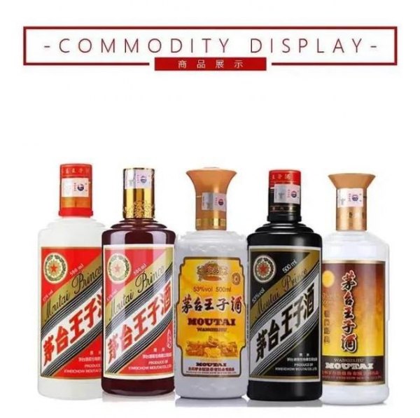 王子茅台酒酱香型白酒,是中国名酒之一,产于贵州遵义仁怀市茅台镇,以优质高粱、小麦、大米、水为原料,采用传统固态法酿造工艺,经久不息,芳香浓郁郁,入口绵甜,回味悠长,空杯留香持久。酱香型白酒的特点是酱香突出、幽雅细腻、酒体醇厚、回味悠长、空杯留香持久。酱香型白酒在国内内市场占有率高达80%以上,是名副其实的白酒行业领导品牌。