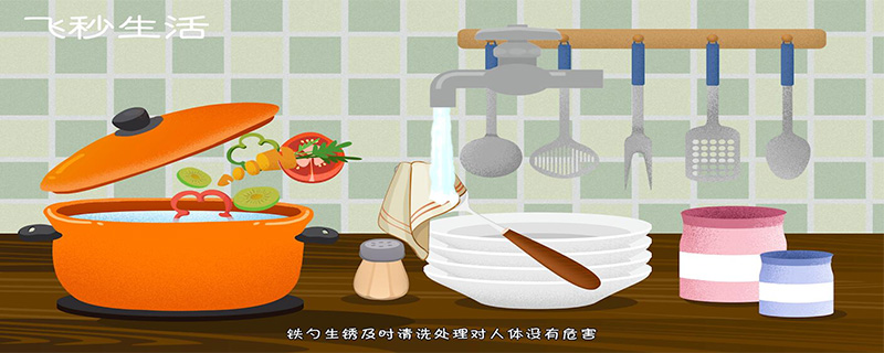 铁勺生锈后及时清洗对人体无害,铁勺上的铁锈主要是四氧化三铁元素,适量的四氧化三铁能补充人体微量元素,但是人体不能过量吸收此元素,因此铁勺生锈后需要清洗干净使用,对人体无害。
