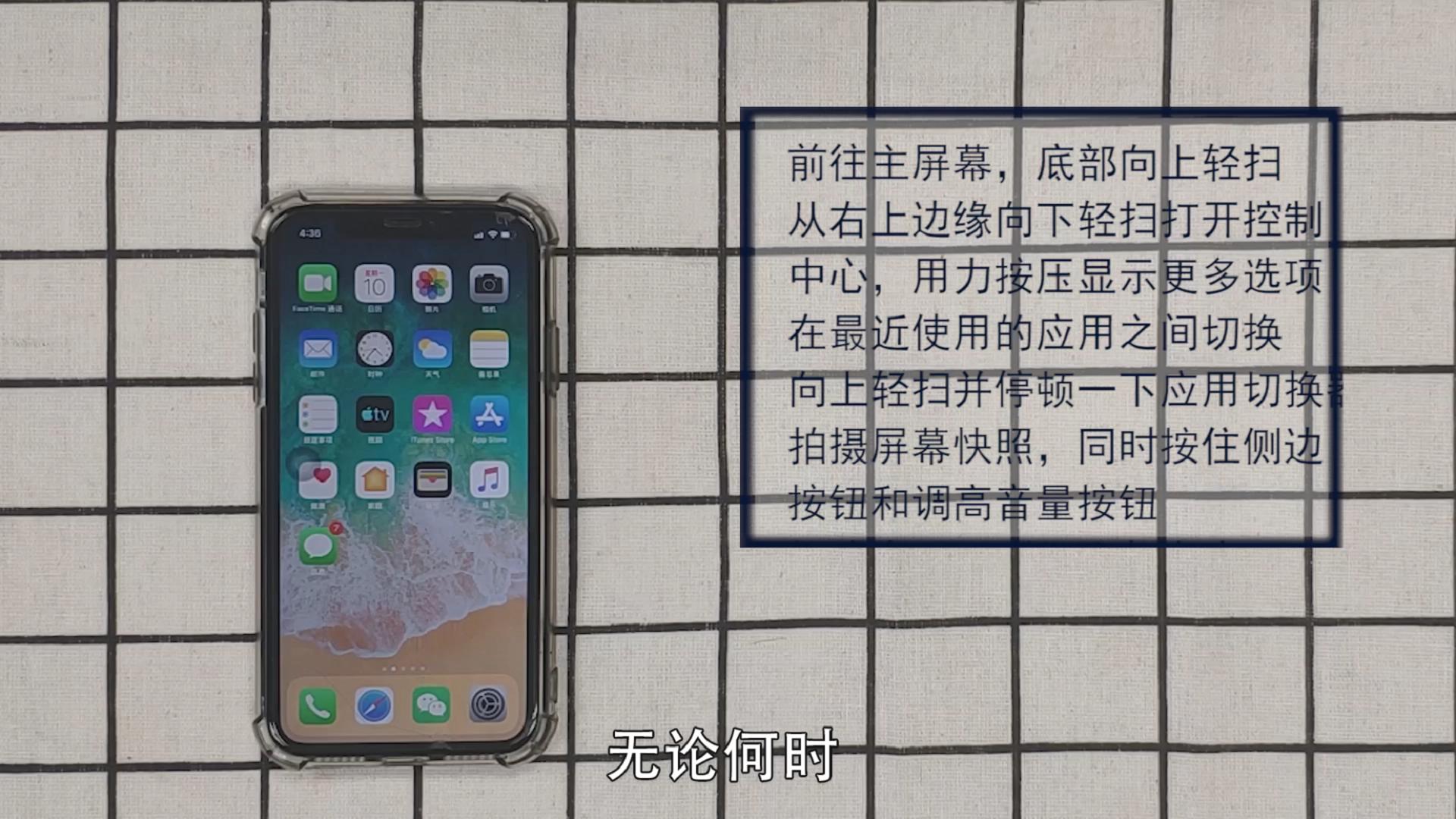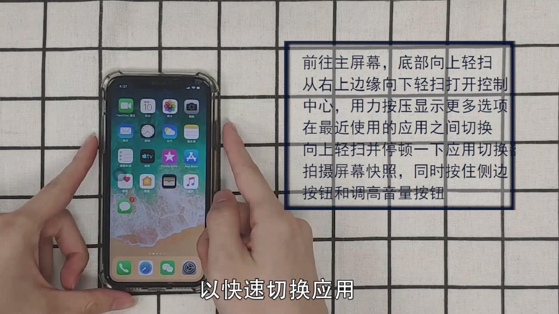 我们以新版苹果手机为例,它的操作手势主要有这样几种。
