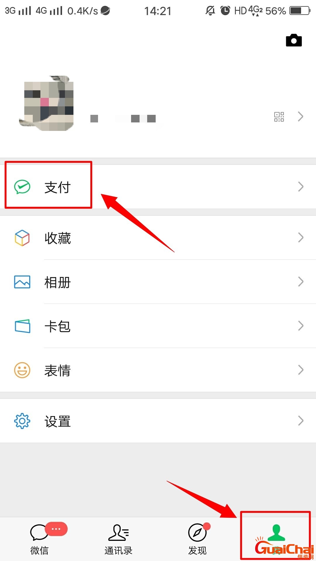 3、进入微信个人中心页面,点击列表中的【支付】按钮;
