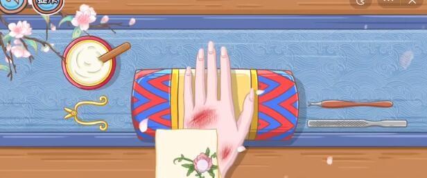 2、然后用药膏去掉嬛嬛手上的伤疤,使用3号工具去除指甲的死皮;