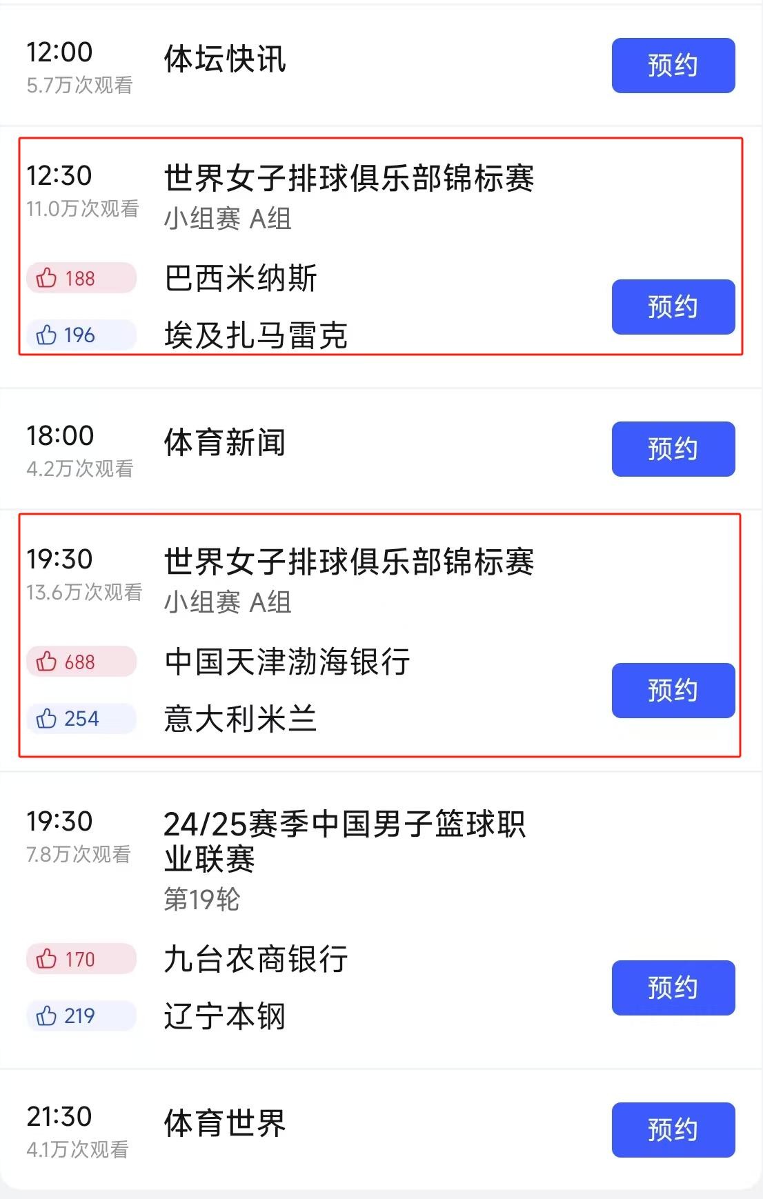 可以看到巴西米纳斯跟埃及扎马雷克的比赛正在进行中,今天晚上有天津渤海银行对战意大利米兰,我是支持天津队的们就是爱国!哈哈哈加油女排!