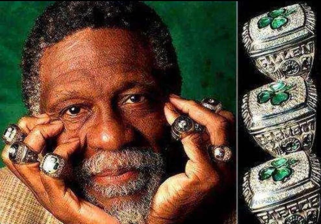 比尔·拉塞尔,绰号“指环王”,被认为是NBA历史最出色的防守型中锋。一个加强板邓肯。