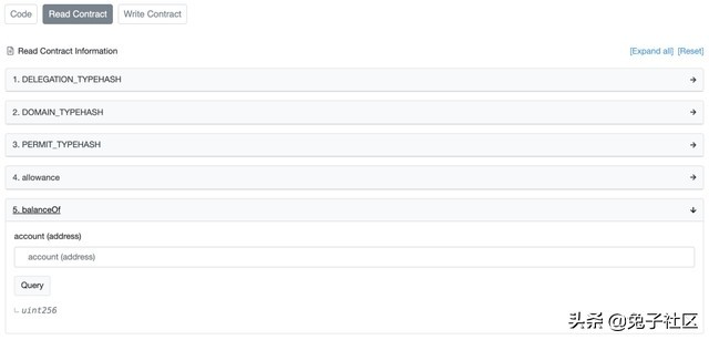 4.[阅读合约]选项卡下,查看合约一般性信息。例如,可查询有使用权限的钱包中代币的特定地址或钱包余额。