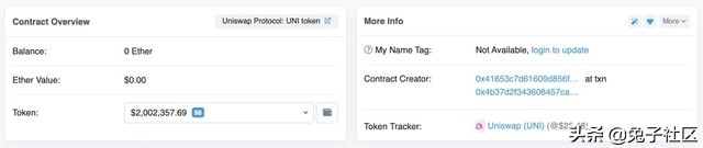 2.即可看到有关Uniswap(UNI)代币合约的合约余额和其他通用信息的详情。