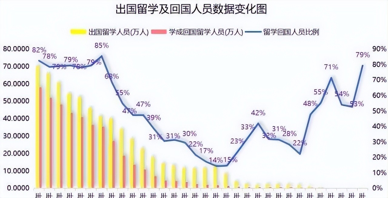 不过好在从2008年至2018年间,越来越多的留学生在学业完成之后回到祖国。