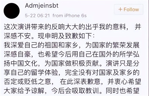 2017年五月二十一日,一场关于中国留学生在美国马里兰大学的毕业演讲,震惊了整个华人圈子,甚至于演讲视频传到国内,席卷网络,引发国人众怒。