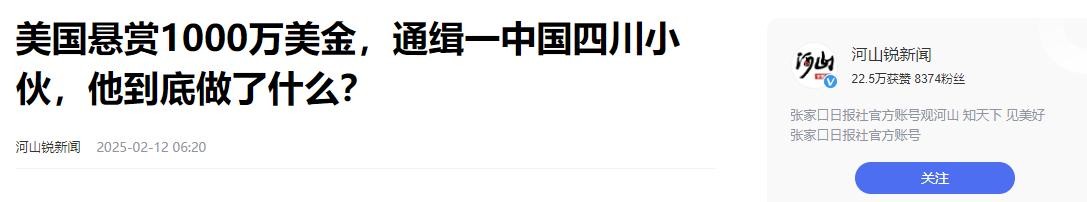 美国悬赏1000万美金,通缉一中国四川小伙,他到底做了什么?
