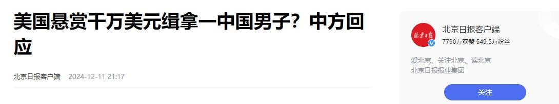 2024年12月,美国政府发布了一则悬赏公告,金额高达1000万美元,旨在追捕一名来自中国四川的青年——关天峰。