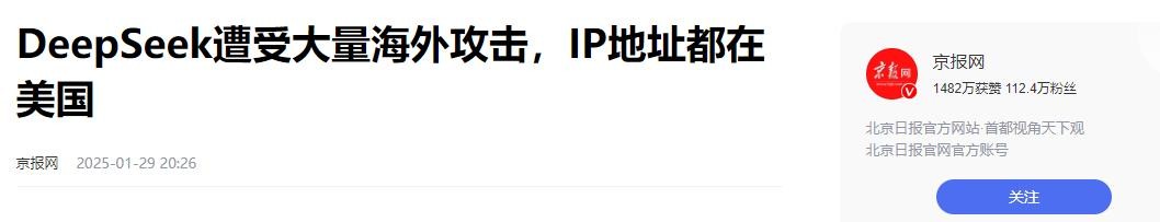 这些年来,中国企业遭受来自美国IP的不明攻击还少吗?就拿最近炙手可热的deepseek来说,美国见无法将其据为己有,便使出了下作手段。
